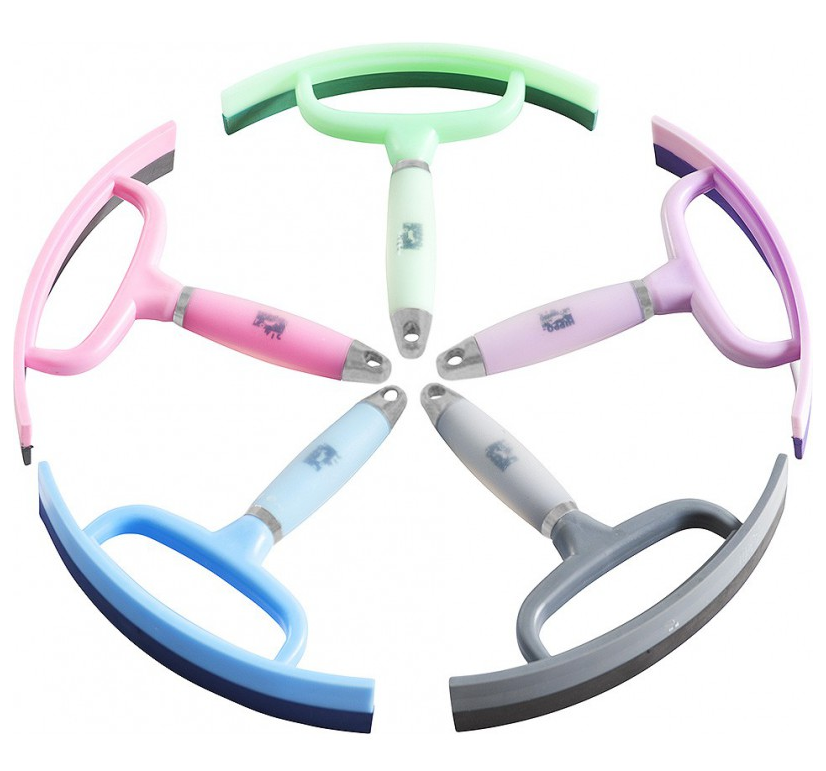 En polypropylène avec raclette souple en TPR 20 mm. Poignée en ABS recouvert de gel à mémoire de forme. Culot perforé en ABS plaqué aluminium.
