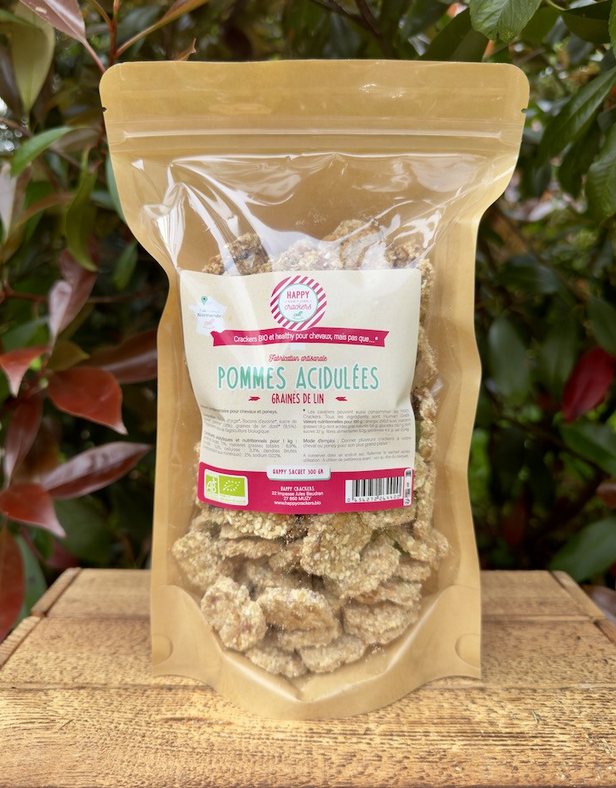 Crackers Bio et healthy avec des morceaux de pommes acidulées bio, source de fibres et d’antioxydants. Cette recette contient également des graines de lin pour les oméga 3, des flocons d’orge et d’avoine Bio.