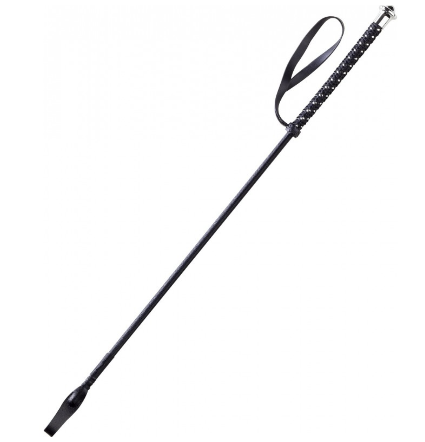 En fibre de verre recouvert nylon tressé. Poignée antidérapante tressée en polyester et fil coloris argenté, culot plastique métallisé avec dragonne en thermoplastique TPE et claquette fine fermée en cuir vachette.