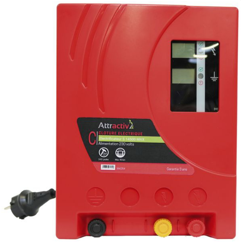 Electrificateur S 14500 ultra puissant avec adaptation intelligente de la puissance, deux affichages numériques rétro-éclairés pour tension de sortie et de mise à la terre plus voyants LED clignotants 2 couleurs : garantie 3 ans