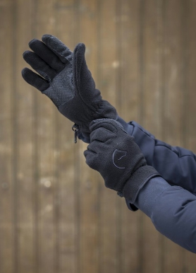 Le dessus de la main est en fibres polaires 100% polyester. Il se trouve des renforts « picots » au niveau de la paume et aux passages de rênes.