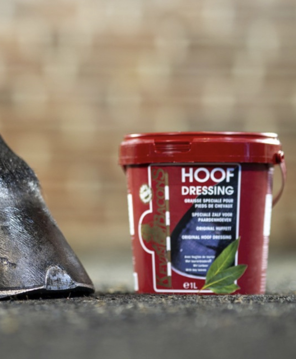 Graisse pour sabots de couleur noir à base de laurier afin d’assurer le bon équilibre du pied du cheval.