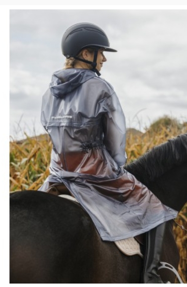 Veste conçue en tissu PVC transparent, offrant une protection contre la pluie tout en restant souple et agréable à porter, avec bandes velcro sur les jambes.