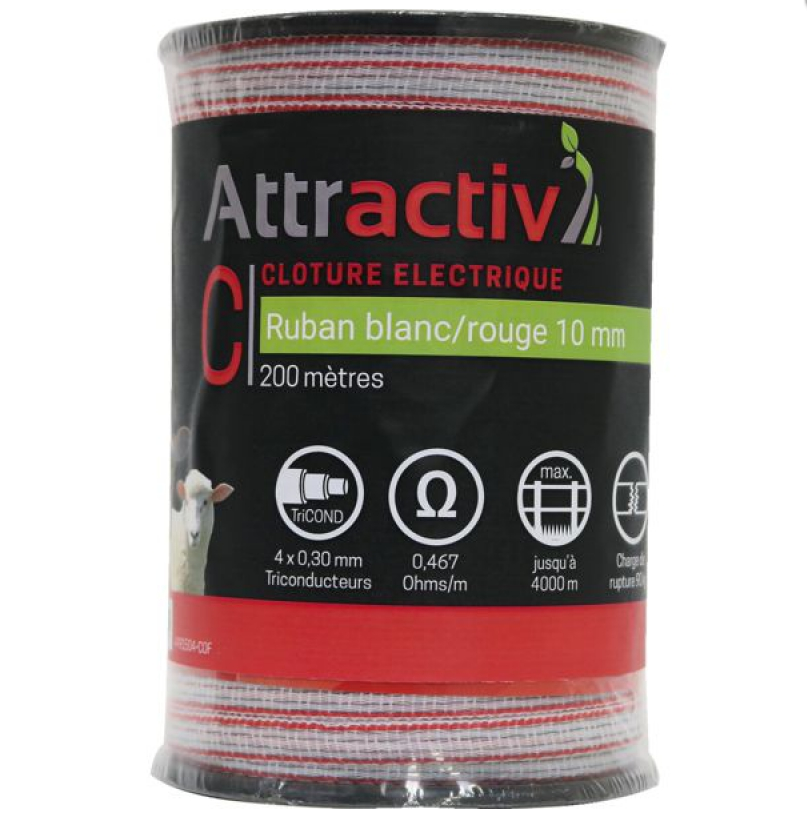 Ruban blanc/rouge, épaisseur 10 mm, bobine de 200 m, 4 conducteurs