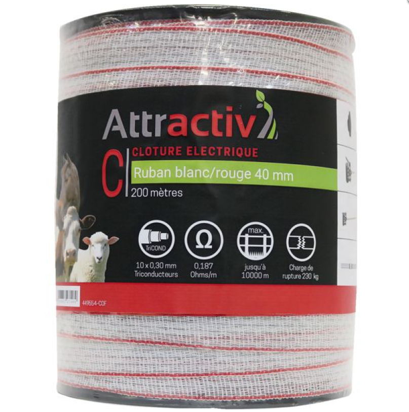 Ruban blanc/rouge, épaisseur de 40 mm, bobine de 200 m, 10 conducteurs