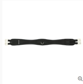 Sangle en vinyle alvéolé qui limite les irritations dues à la transpiration et aux frottements. Équipée d’un anneau central et de deux bandes en polypropylène latérales pour la fixation des enrênements. Boucles à rouleaux en acier nickelé montées sur supports élastiques d’un côté.